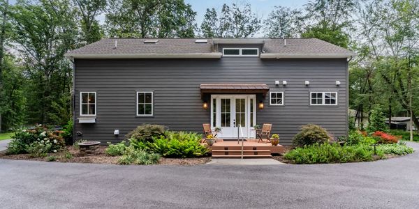 Follow me up the gorgeous walnut stairs to be very surprised- an AMAZING BIG "Bunk Room" extraordinaire! 6 beds each having a closet , drawers, light & niche to charge your cell. Two skylights with recessed lights on vaulted pale blue wood ceiling add to the ambiance of this cozy carpeted luxurious hide out! One of the full baths has a stack washer/dryer for guests. The back deck is adorned by beautiful copper overhang. Gas firepit is not too far, nor is the hammock. 6" crawl space accessed by Bilco doors houses the electric box, tankless water heater , reverse osmosis water treatment system and much more storage. Circular driveway can accommodate many guests. Don't miss the copper peacock perched atop the glass cupola on the oversized two car garage. Well insulated, finished dry walls could house a ping pong table or lots of outdoor equipment. Pull down stairs to storage items on fully floored "attic".