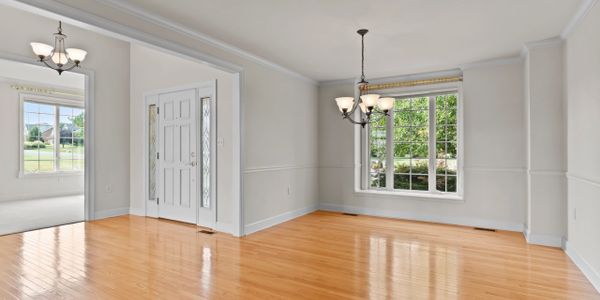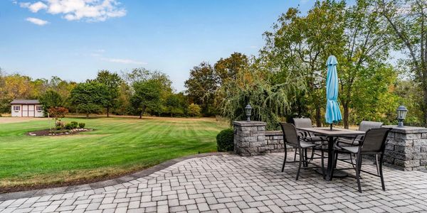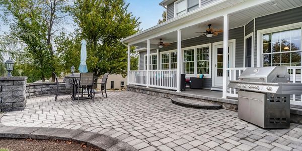 The front wraparound porch is 25 feet to enjoy the summer sunsets with grey tile flooring. The back porch(30’) and large paver patio overlooks a large flat backyard with GREENEST grass because of the in ground irrigation using the water from the new geothermal system.