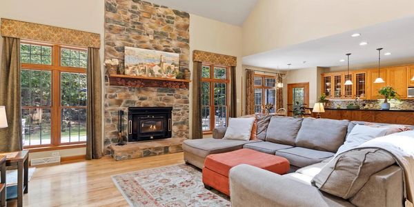 Follow me up the gorgeous walnut stairs to be very surprised- an AMAZING BIG "Bunk Room" extraordinaire! 6 beds each having a closet , drawers, light & niche to charge your cell. Two skylights with recessed lights on vaulted pale blue wood ceiling add to the ambiance of this cozy carpeted luxurious hide out! One of the full baths has a stack washer/dryer for guests. The back deck is adorned by beautiful copper overhang. Gas firepit is not too far, nor is the hammock. 6" crawl space accessed by Bilco doors houses the electric box, tankless water heater , reverse osmosis water treatment system and much more storage. Circular driveway can accommodate many guests. Don't miss the copper peacock perched atop the glass cupola on the oversized two car garage. Well insulated, finished dry walls could house a ping pong table or lots of outdoor equipment. Pull down stairs to storage items on fully floored "attic".